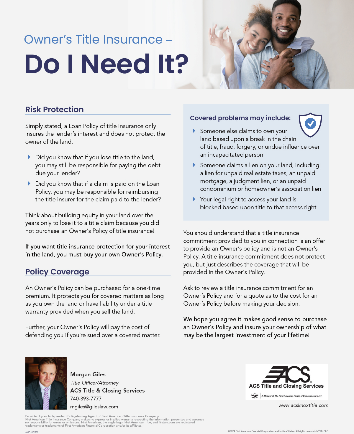 Contact us today to receive a quote for our services and learn more about how we provide the best service in Ohio. Then tell your lender and realtor you want ACS Title and Closing Services to close the transaction.